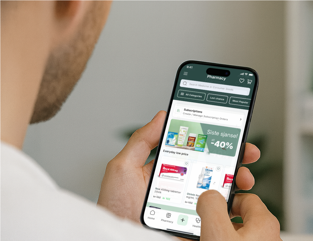 Traditional pharmacies face regulatory constraints, manual processes, and low online penetration. IHS solves this with a modern, integrated digital pharmacy platform including Rx agreements, a Health App for patients, and a Pharma Module for pharmacists.